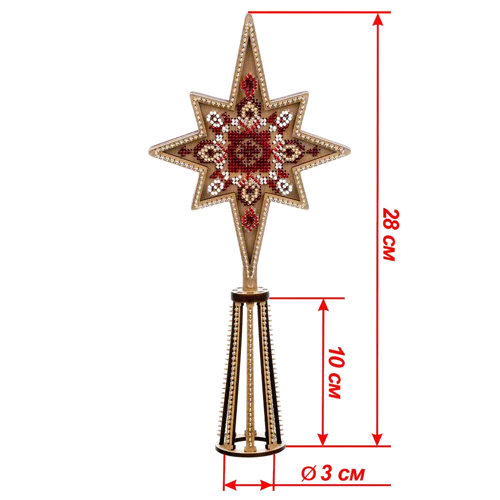 Сюжет розроблений спеціально для вишивки бісером на дерев’яній та пластиковій основі. Завдяки продуманій перфорації вишивати легко й комфортно навіть тим, хто лише починає знайомство з бісером. Готова верхівка має акуратний вигляд, чіткий контур і надійно тримається на ялинці.