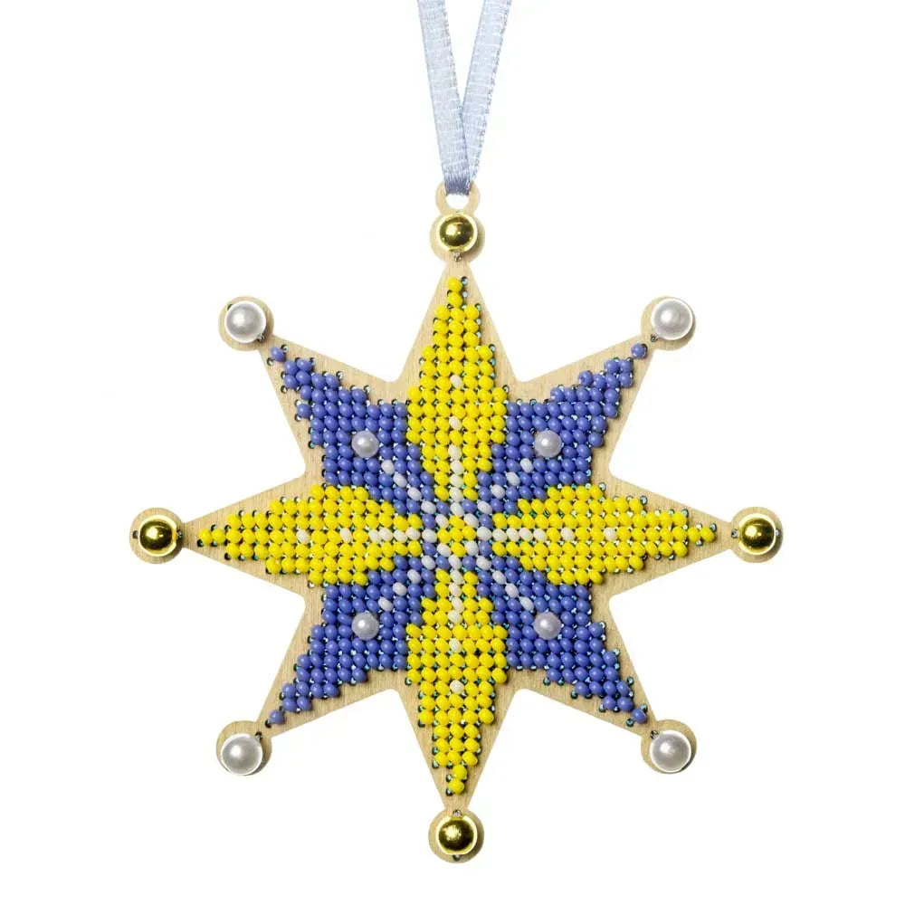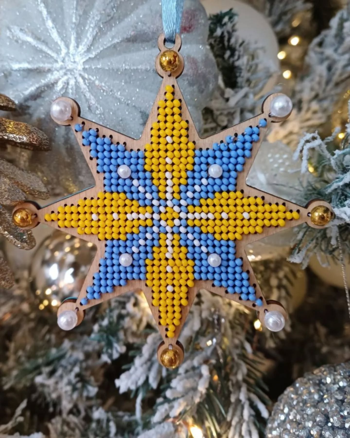 Замовляйте заготовку для вишивки бісером «Ялинкова прикраса – Українська зоря» та створіть особливу різдвяну іграшку, яка нагадуватиме про Україну в кожну святкову мить.