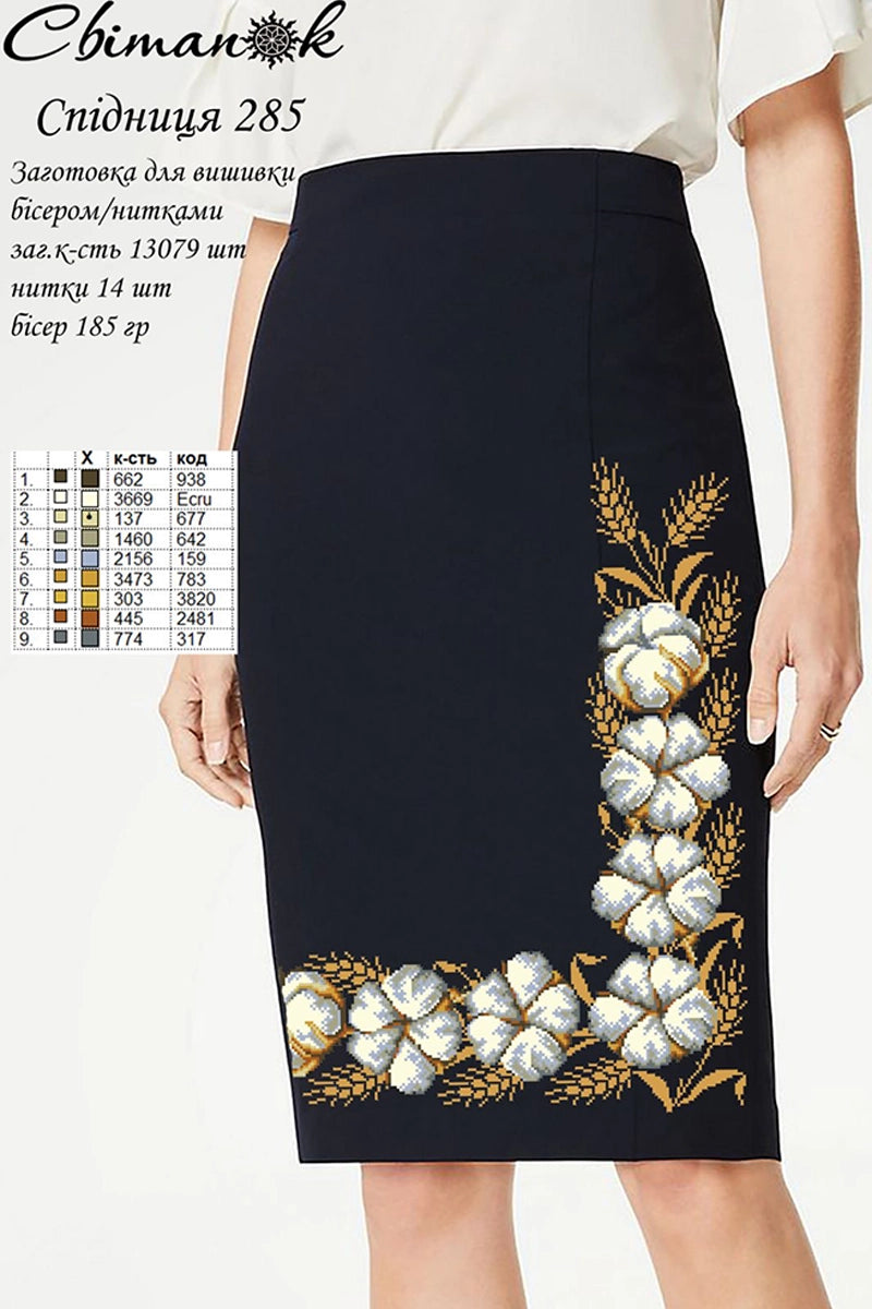 Купити заготовку для жіночої спідниці з рослинним орнаментом. Це ідеальний варіант, щоб створити унікальну жіночу спідницю-вишиванку у сучасному українському стилі. Підходить для вишивки бісером або нитками DMC.