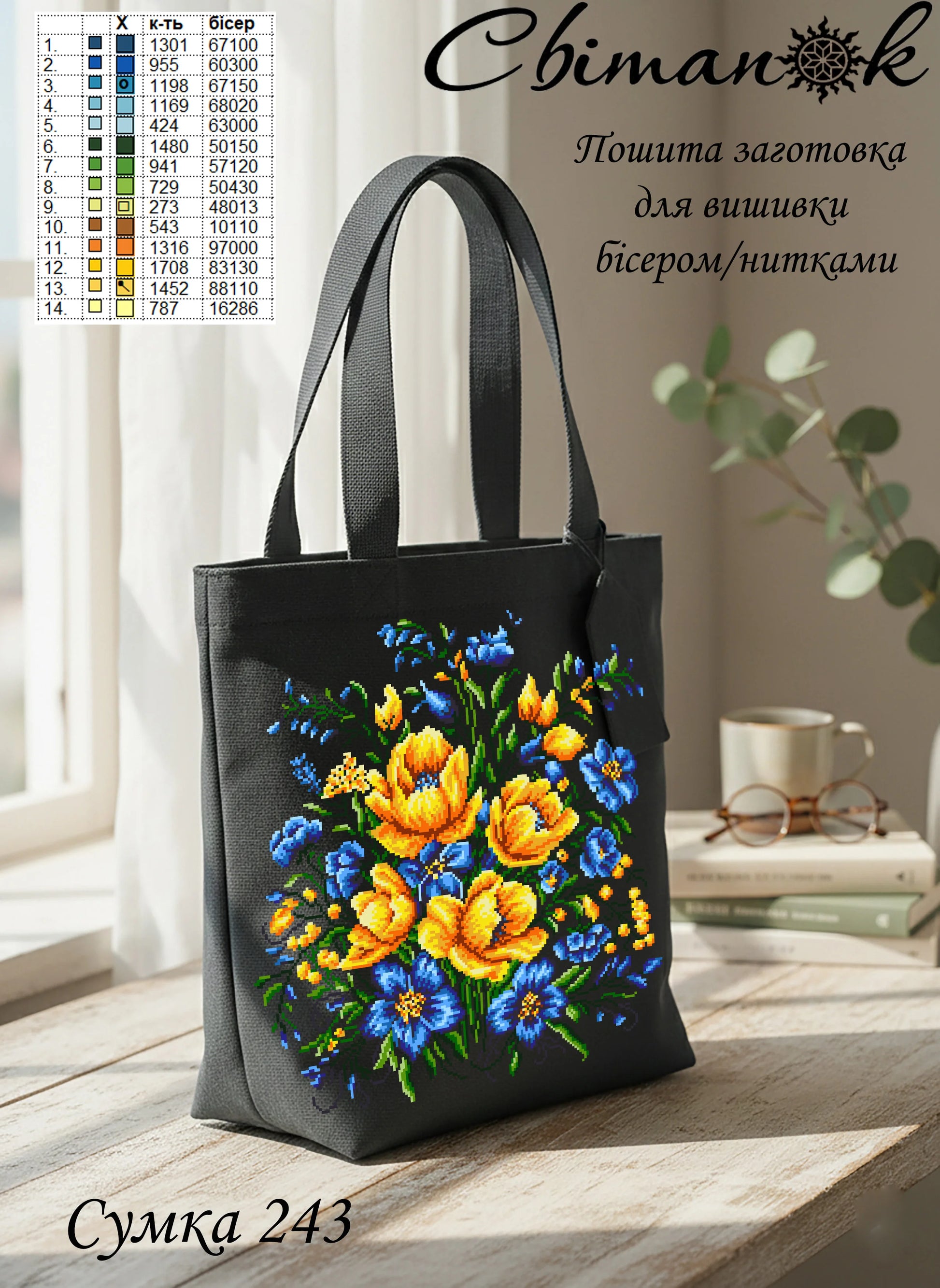 Стильна пошита заготовка для вишивки бісером або нитками поєднує сучасний дизайн із витонченим квітковим орнаментом та високоякісний чіткий друк на міцній зносостійкій тканині.