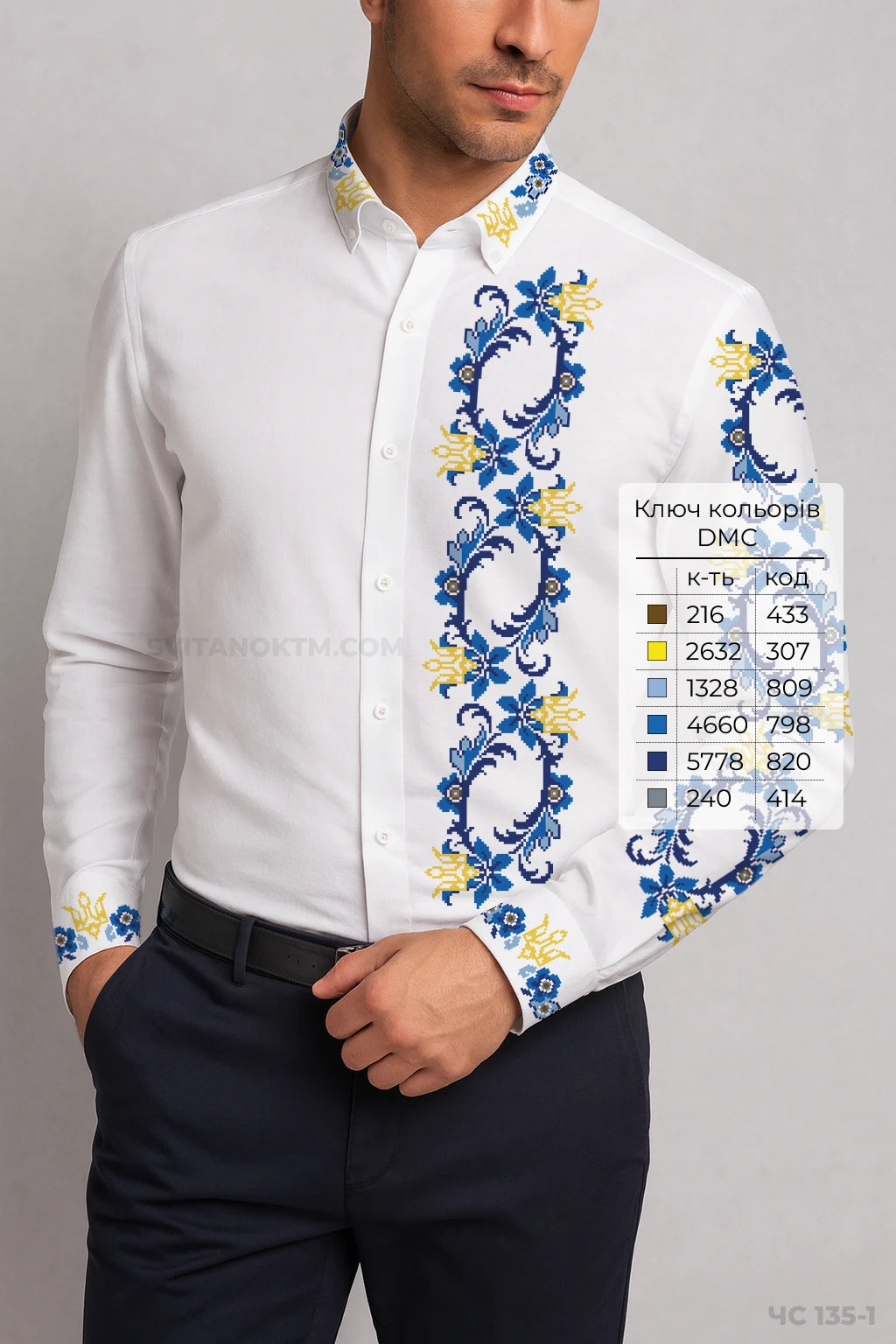 Не пошита заготовка для вишивки чоловічої сорочки з чорним орнаментом. Ідеальний варіант для створення унікальної чоловічої вишиванки у традиційному українському стилі. Підходить для вишивки бісером Preciosa або нитками DMC.