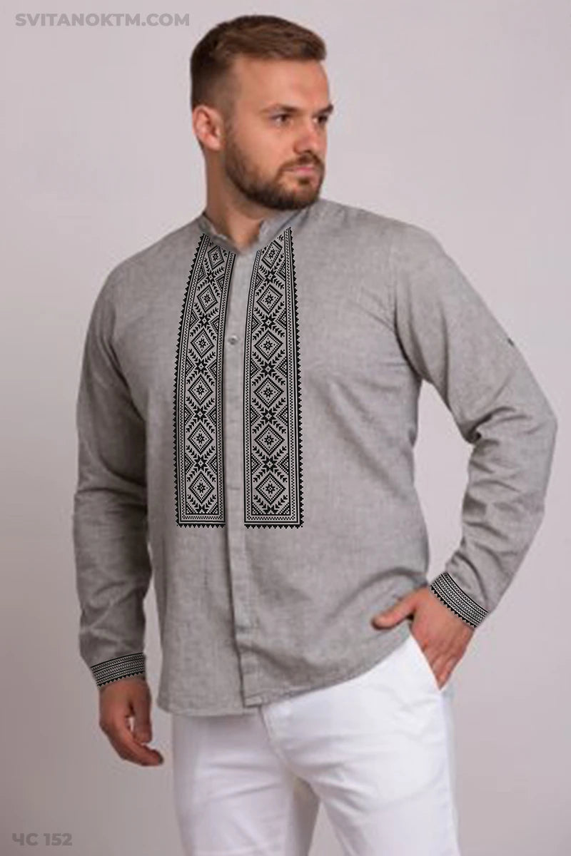 Не пошита заготовка для вишивки чоловічої сорочки з мінімалістичним орнаментом. Ідеальний варіант для створення унікальної чоловічої вишиванки у традиційному українському стилі. Підходить для вишивки бісером Preciosa або нитками DMC.
