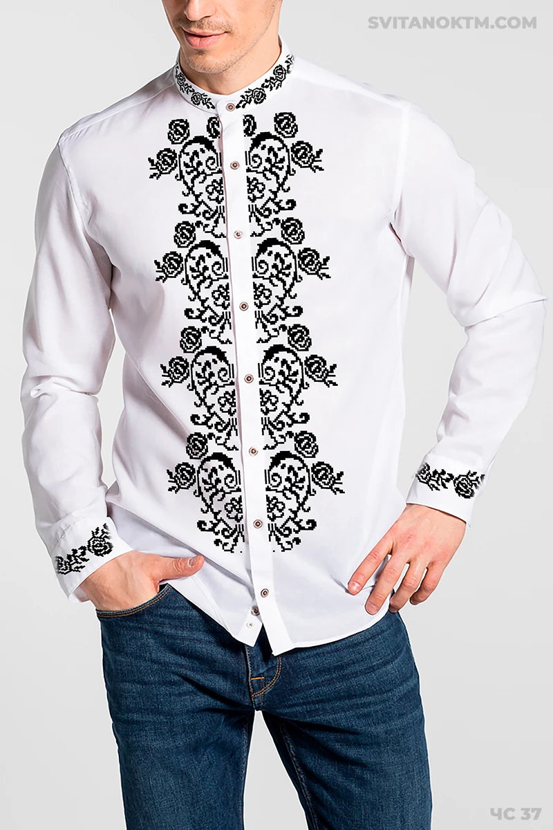Не пошита заготовка для вишивки чоловічої сорочки з квітковим орнаментом. Ідеальний варіант для створення унікальної чоловічої вишиванки у традиційному українському стилі. Підходить для вишивки бісером Preciosa або нитками DMC.