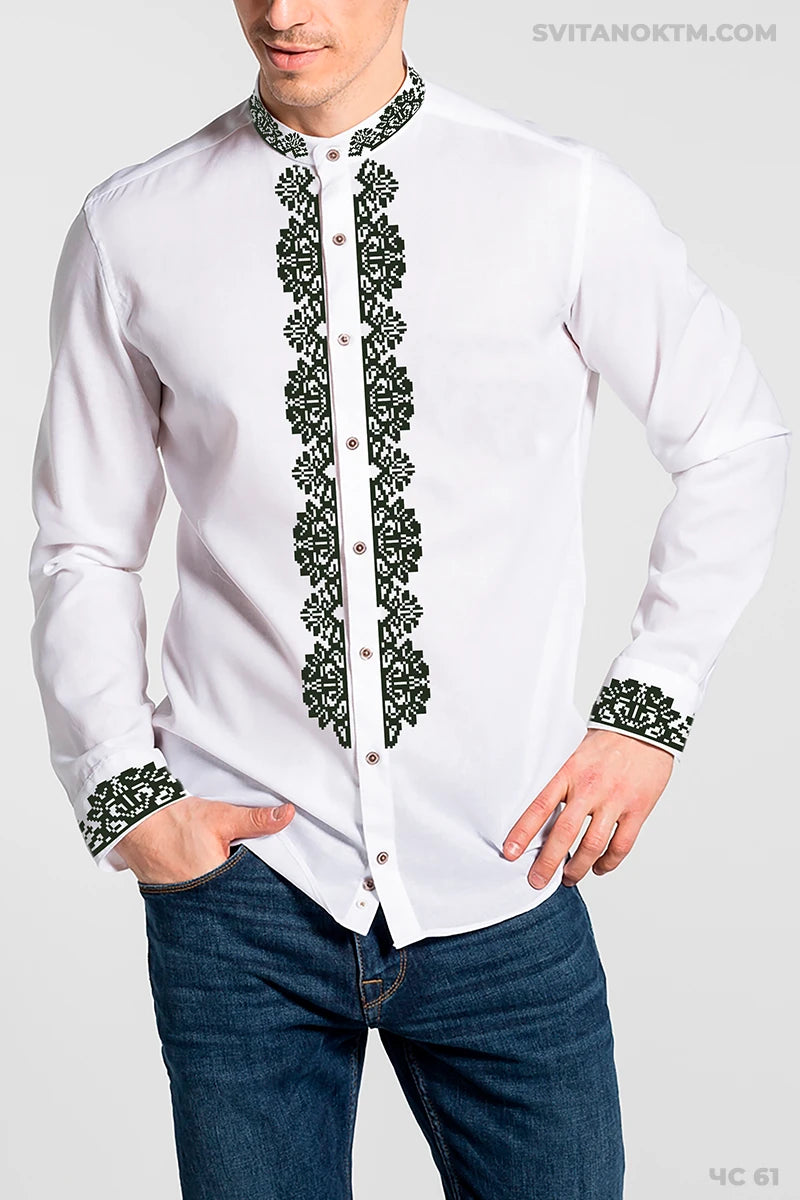 Не пошита заготовка для вишивки чоловічої сорочки з чорним орнаментом. Ідеальний варіант для створення унікальної чоловічої вишиванки у традиційному українському стилі. Підходить для вишивки бісером Preciosa або нитками DMC.