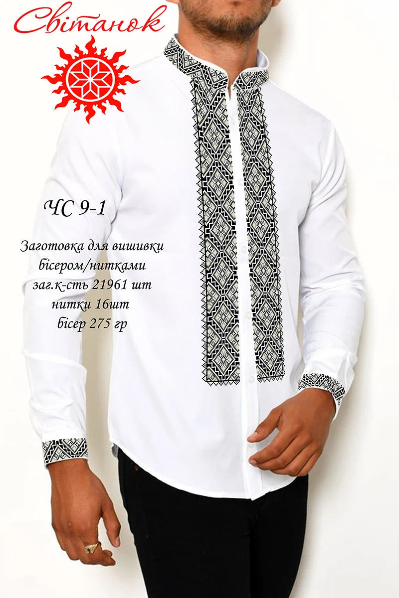 Не пошита заготовка для вишивки чоловічої сорочки з геометричним орнаментом. Ідеальний варіант для створення унікальної чоловічої вишиванки у традиційному українському стилі. Підходить для вишивки бісером Preciosa або нитками DMC.