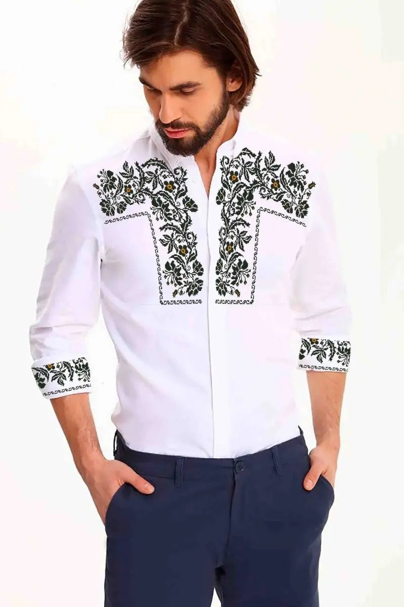Не пошита заготовка для вишивки чоловічої сорочки з квітковим орнаментом. Ідеальний варіант для створення унікальної чоловічої вишиванки у традиційному українському стилі. Підходить для вишивки бісером Preciosa або нитками DMC.