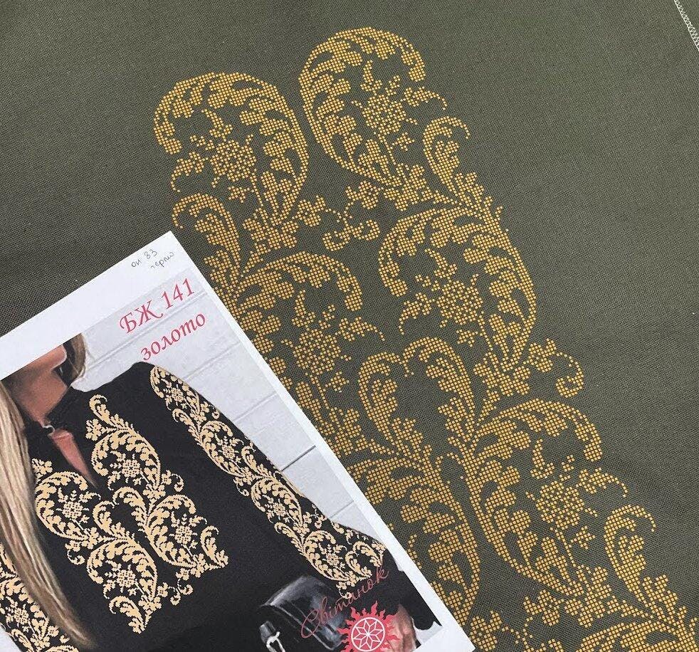 Купити заготовку для вишивки жіночої блузи. Втілення витонченості та чистоти. Золотий візерунок створює ефект коштовного мережива, що додає образу вишуканості та елегантності. Така вишивка ідеально пасує для урочистих подій, весіль або офіційних виходів, залишаючись поза часом і модою. Ідеальний варіант для створення унікальної жіночої вишиванки у традиційному українському стилі. Підходить для вишивки бісером або нитками DMC.